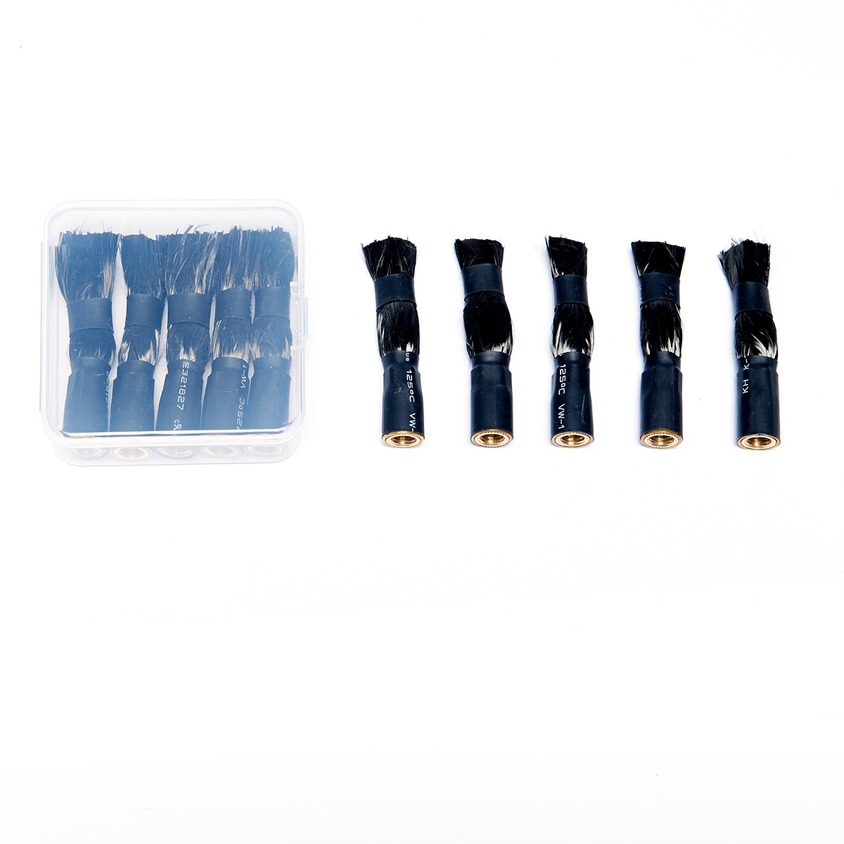 Кисть изготовлена из углеродных волокон для лучшей передачи тока при электрохимической очистке сварочных швов. Благодаря небольшому диаметру и гибкости, кистью удобно производить очистку сварных швов в труднодоступных участках. Углеродные волокна не ломаются, имеют хорошую электропроводность и долгий срок службы.